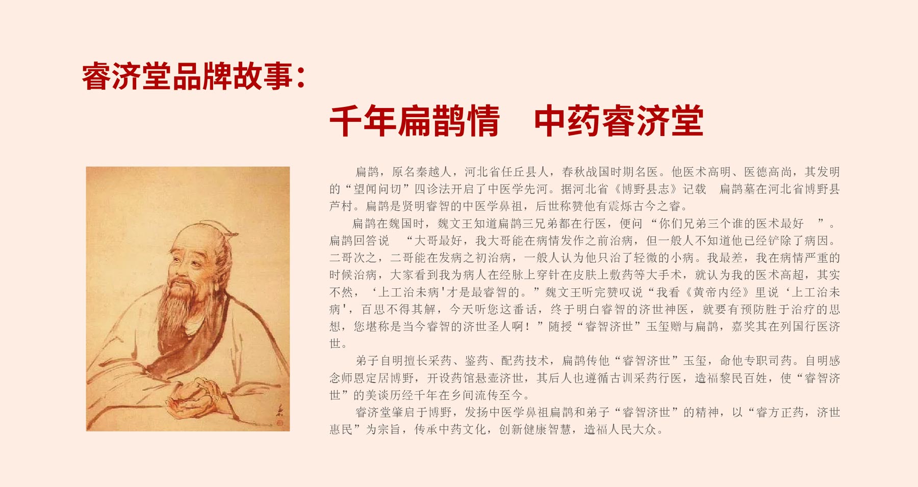 濟ji世shi惠hui民min就jiu是shi護hu佑you天tian下xia健jian康kang,惠hui及ji黎li民min百bai姓xing。睿rui濟ji堂tang人ren將jiang在zai傳chuan承cheng華hua夏xia中zhong藥yao智zhi慧hui的de基ji礎chu上shang,挖wa掘jue中zhong醫yi實shi踐jian證zheng明ming有you效xiao的de現xian成cheng藥yao方fang,用yong正zheng宗zong道dao地di的de中zhong藥yao材cai,開kai發fa純chun淨jing正zheng藥yao健jian康kang產chan品pin,讓rang治zhi病bing養yang生sheng的de中zhong藥yao方fang劑ji惠hui及ji天tian下xia黎li民min百bai姓xing,履lv行xing造zao福fu人ren民min大da眾zhong的de使shi命ming。