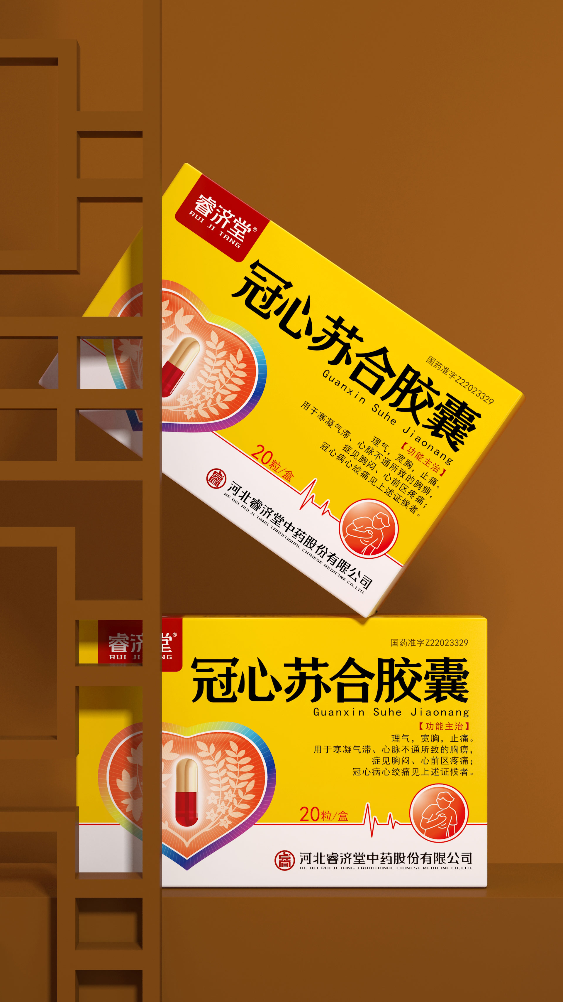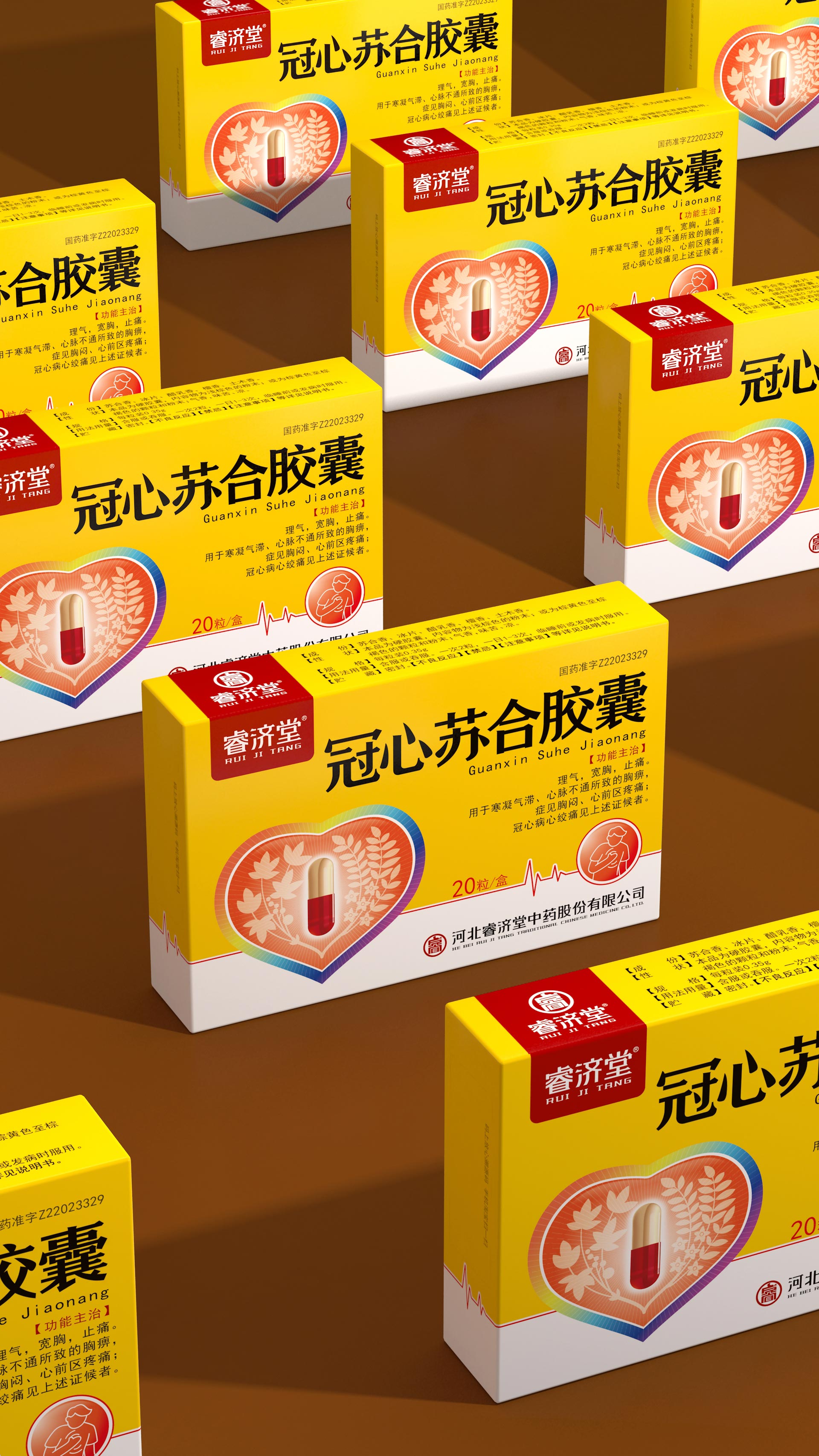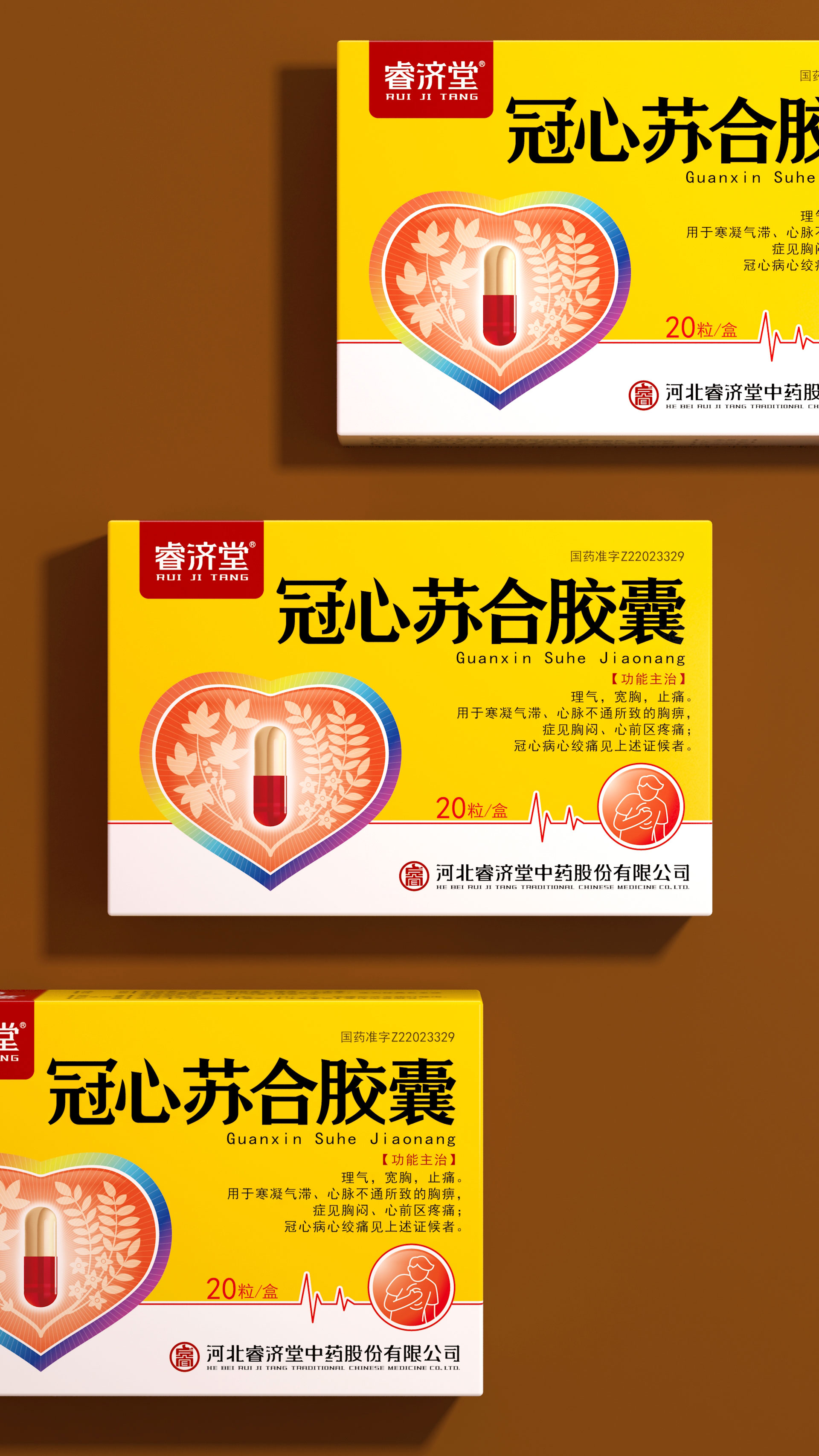 以下為亙一冠心蘇合膠囊中成藥藥品包裝策劃設計案例展示: