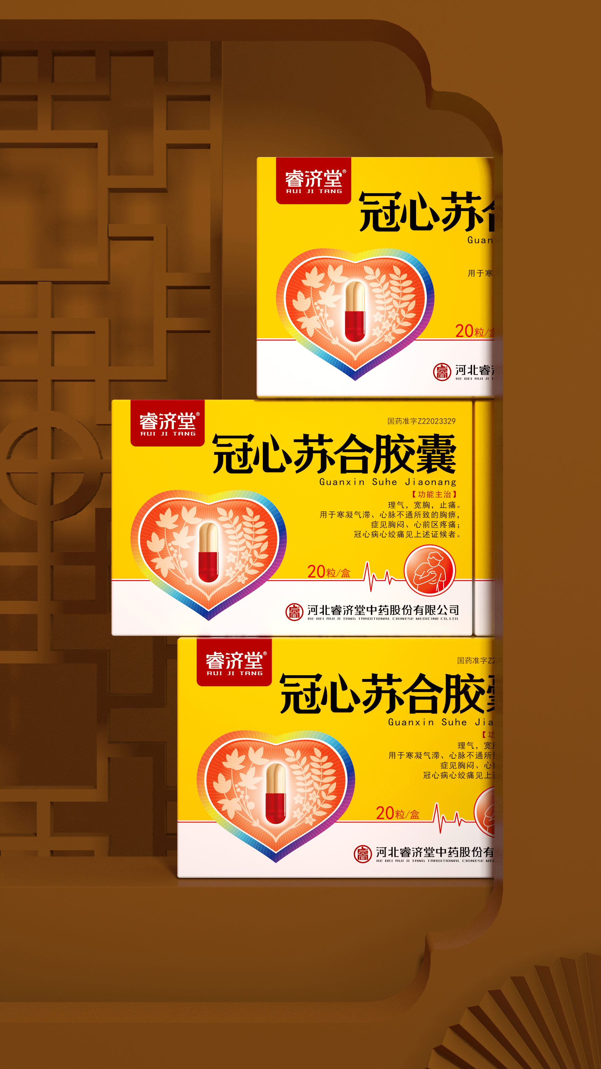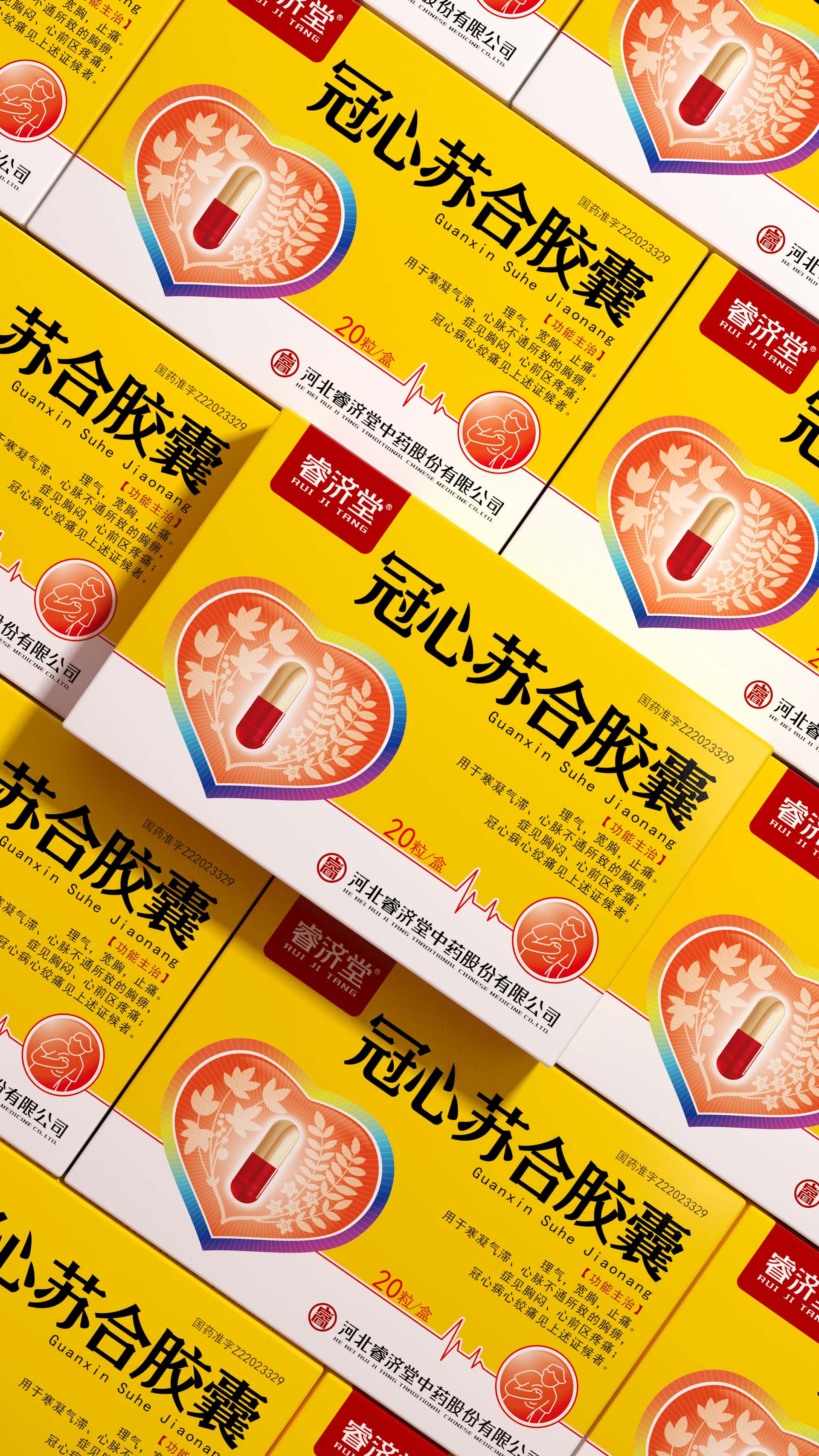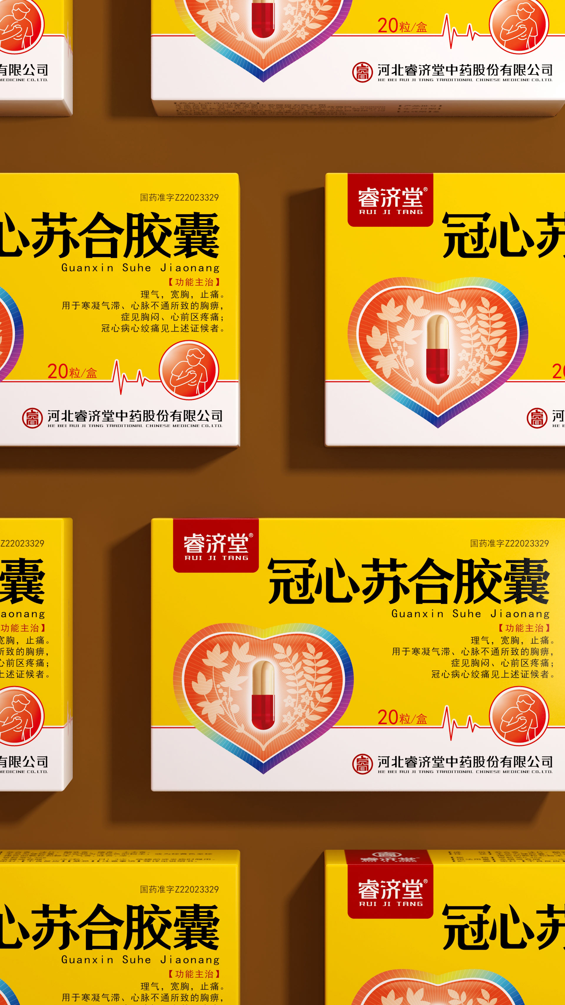 以下為亙一冠心蘇合膠囊中成藥藥品包裝策劃設計案例展示: