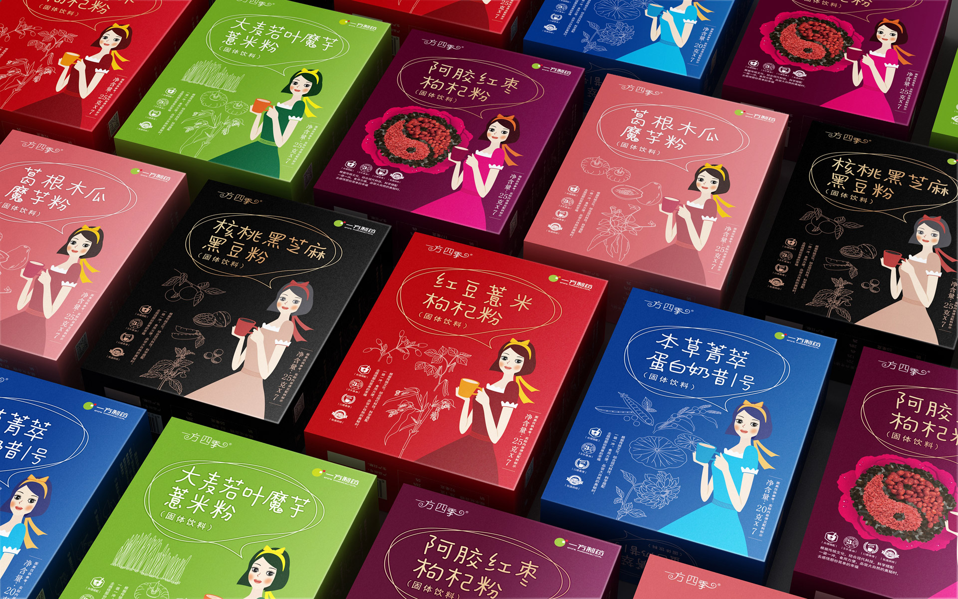 葛根木瓜魔芋粉包裝設計、阿膠紅棗枸杞粉包裝設計、核桃黑芝麻黑豆粉包裝設計、大麥若葉魔芋薏米粉包裝設計、紅豆薏米枸杞粉包裝設計、本草菁萃蛋白奶昔包裝設計......