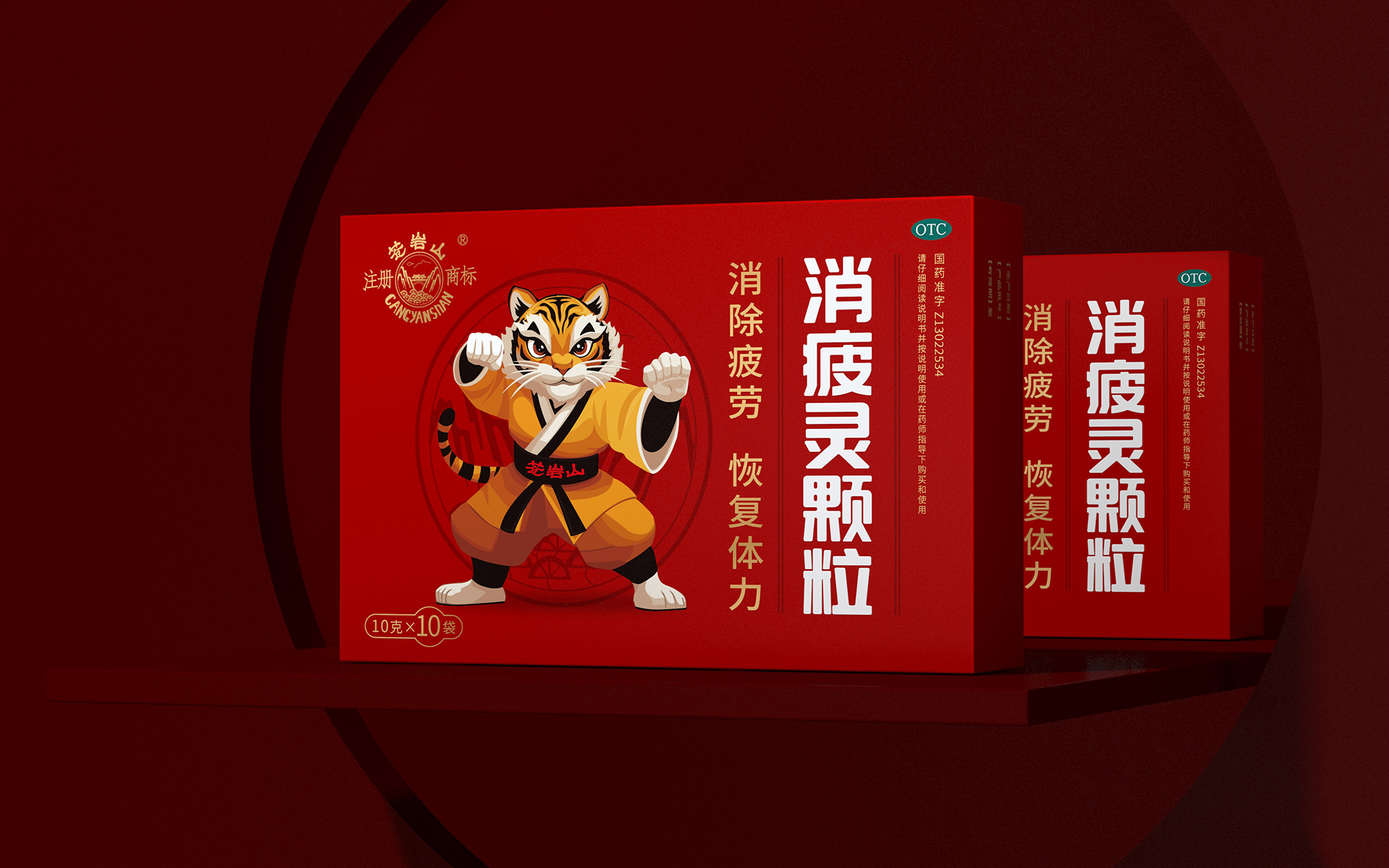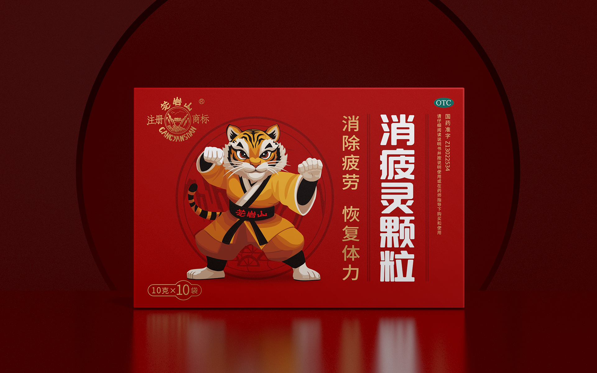 亙一用虎虎生威的IP形象生動傳遞品牌產品核心價值,讓中藥品牌產品蒼岩山牌消疲靈顆粒年輕化、優異化,精準切中現代人對於健康生活的迫切需求,助力品牌產品營銷。