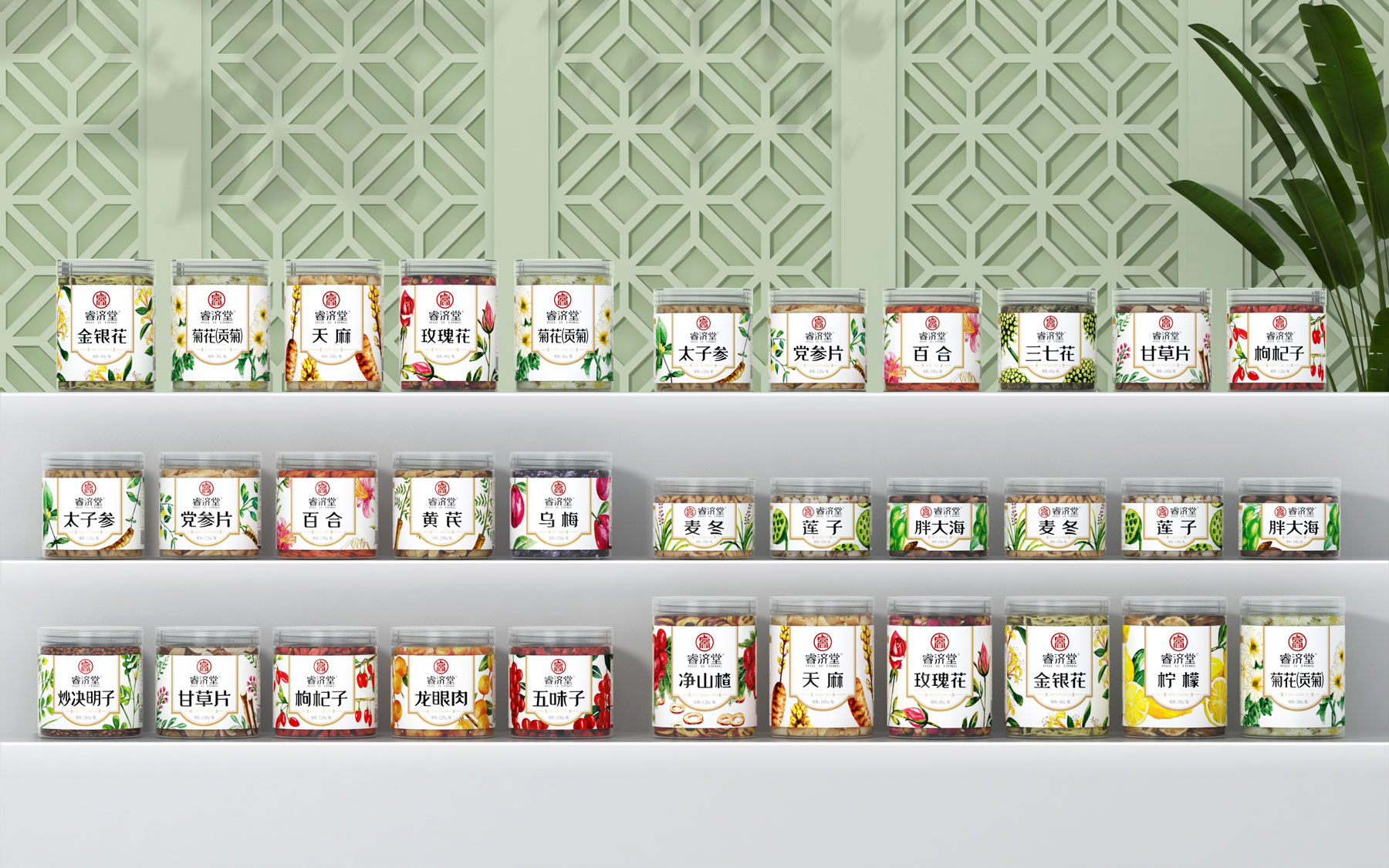 睿濟堂中藥瓶裝中藥飲片包裝設計涵蓋內容: