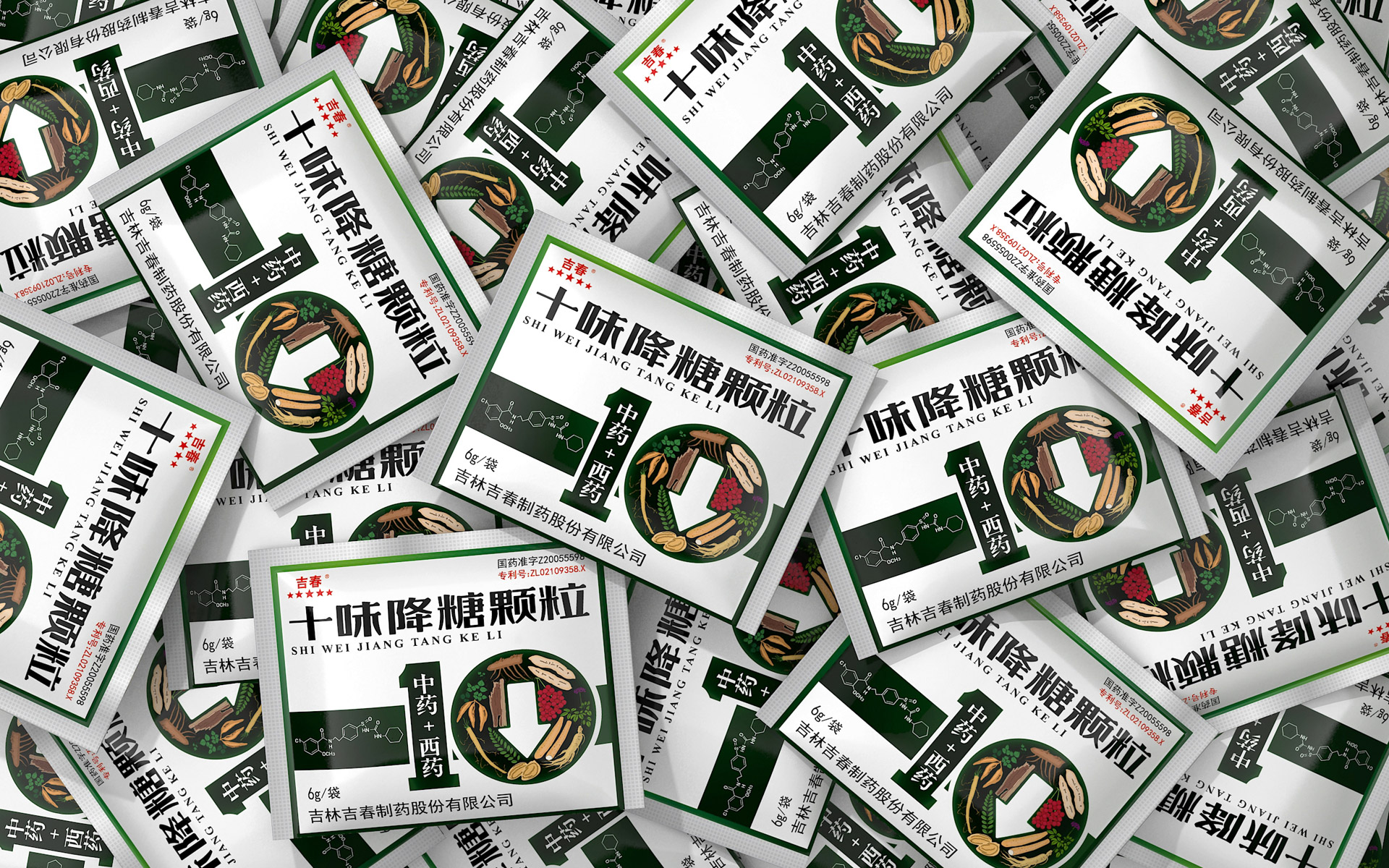 亙一專利藥品包裝設計公司為吉春專利藥品十味降糖顆粒藥品提供營銷策劃包裝設計服務: