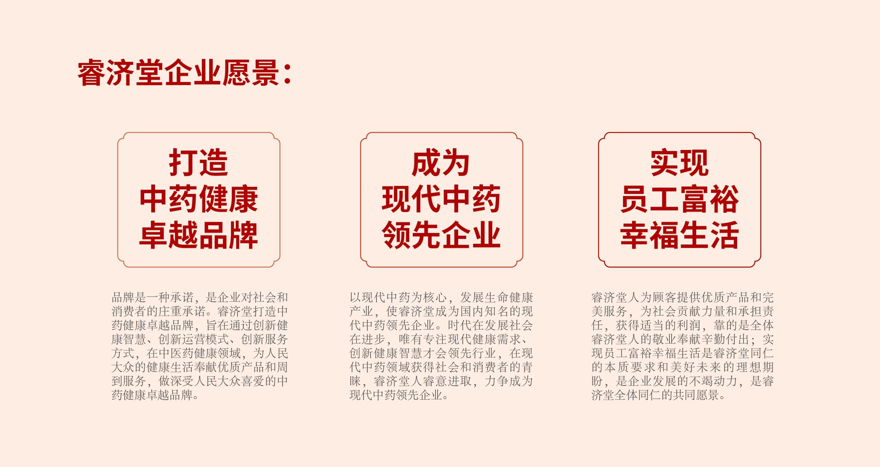 明確睿濟堂經營使命:傳承中藥文化,創新健康智慧,造福人民大眾。