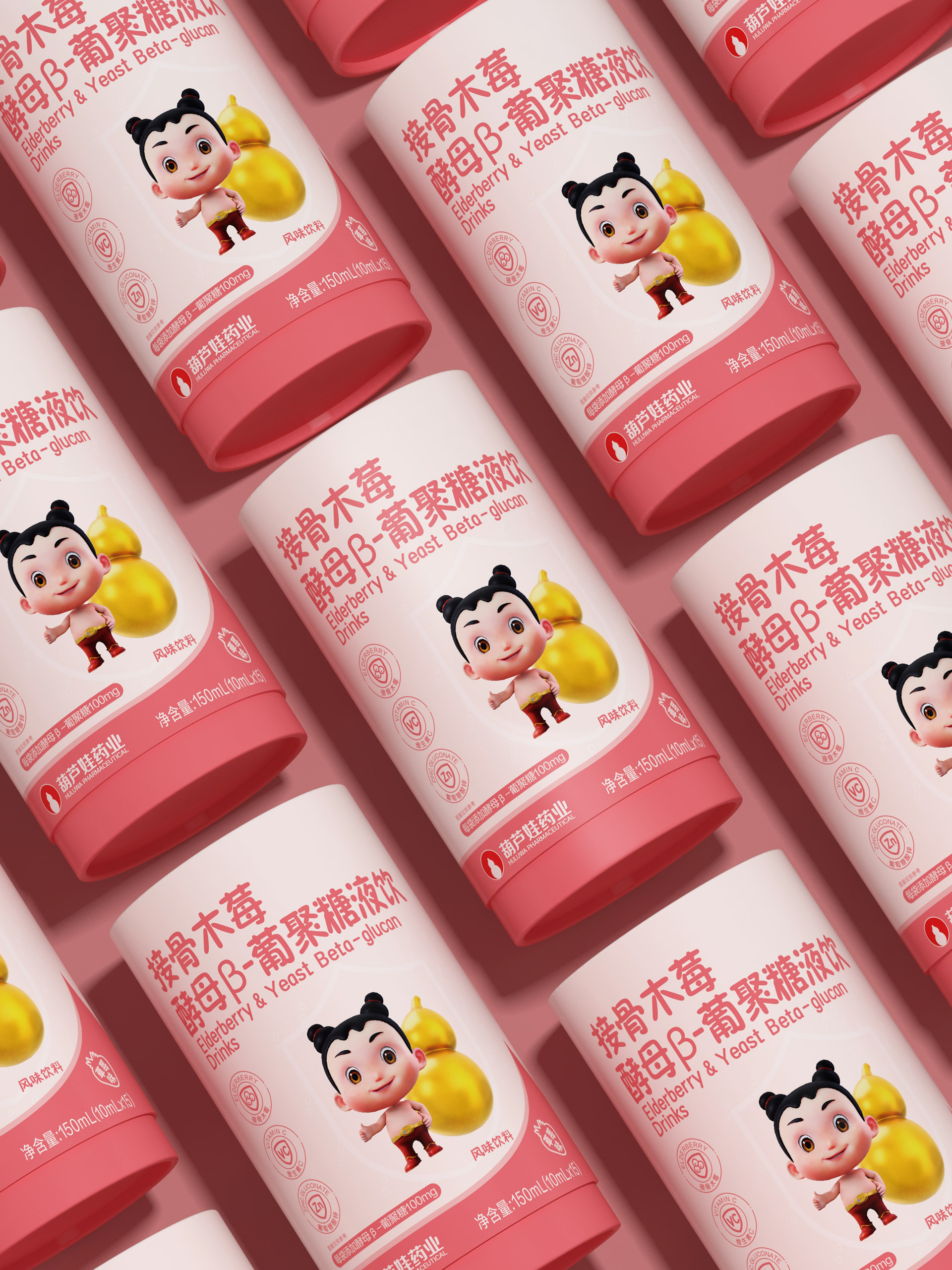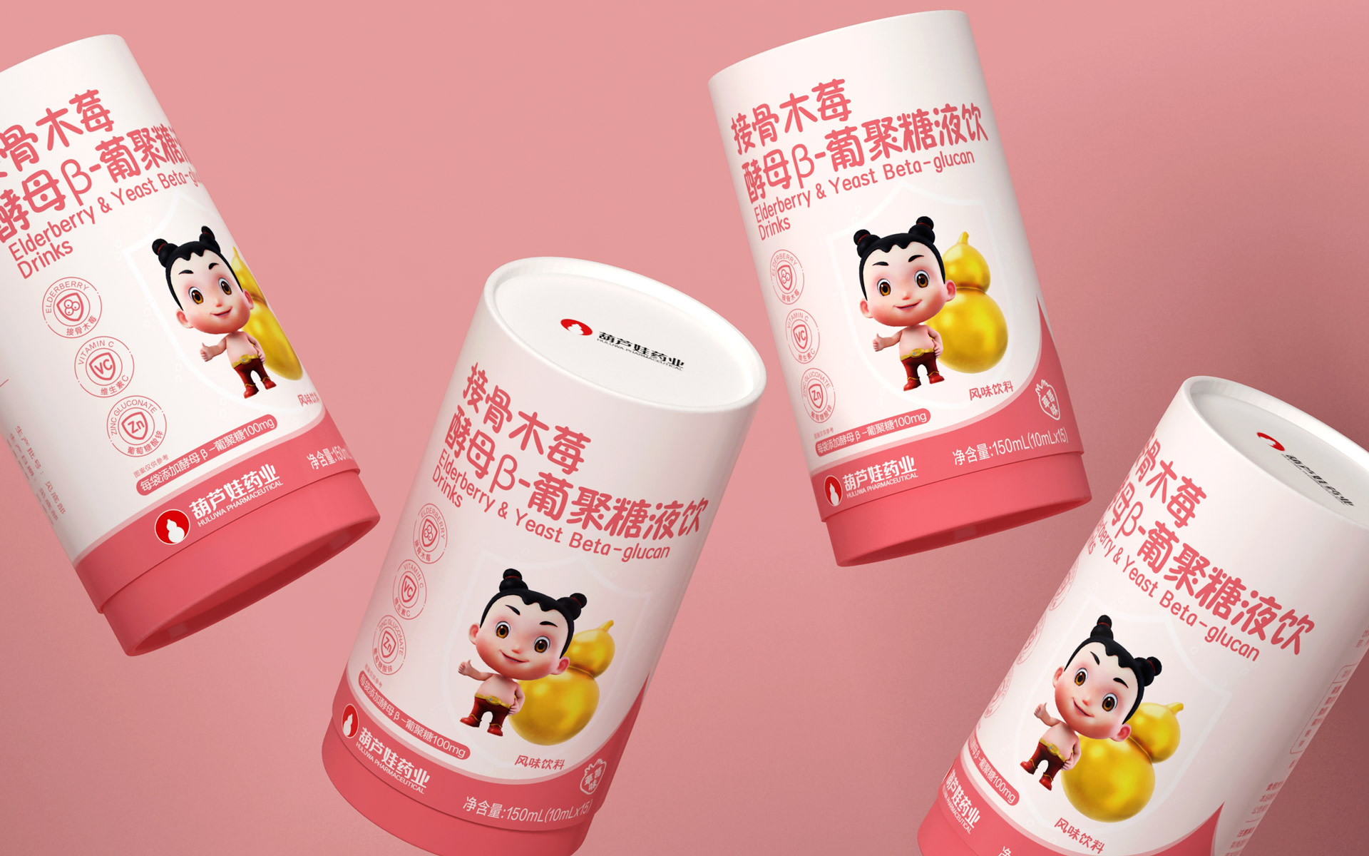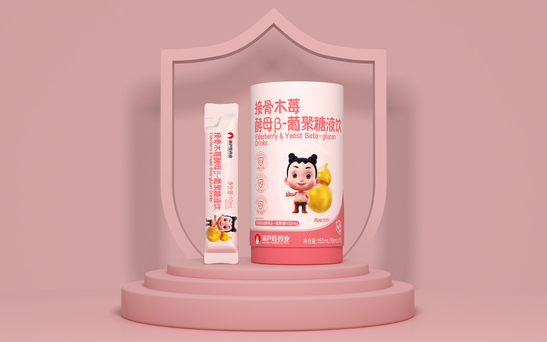 亙一醫藥大健康品牌策劃設計助力葫蘆娃打造接骨木莓酵母β-葡聚糖液飲大健康產品戰略包裝設計