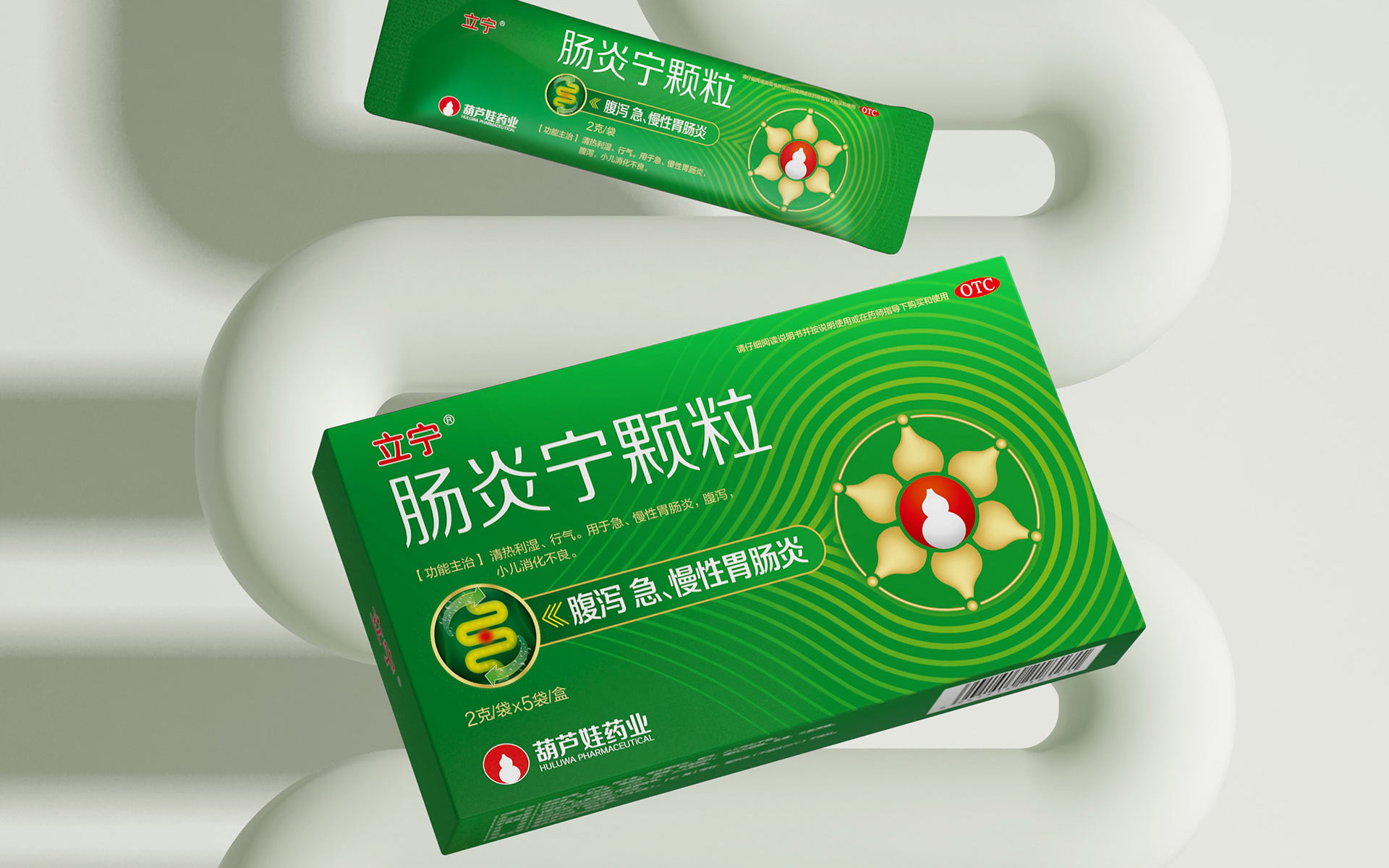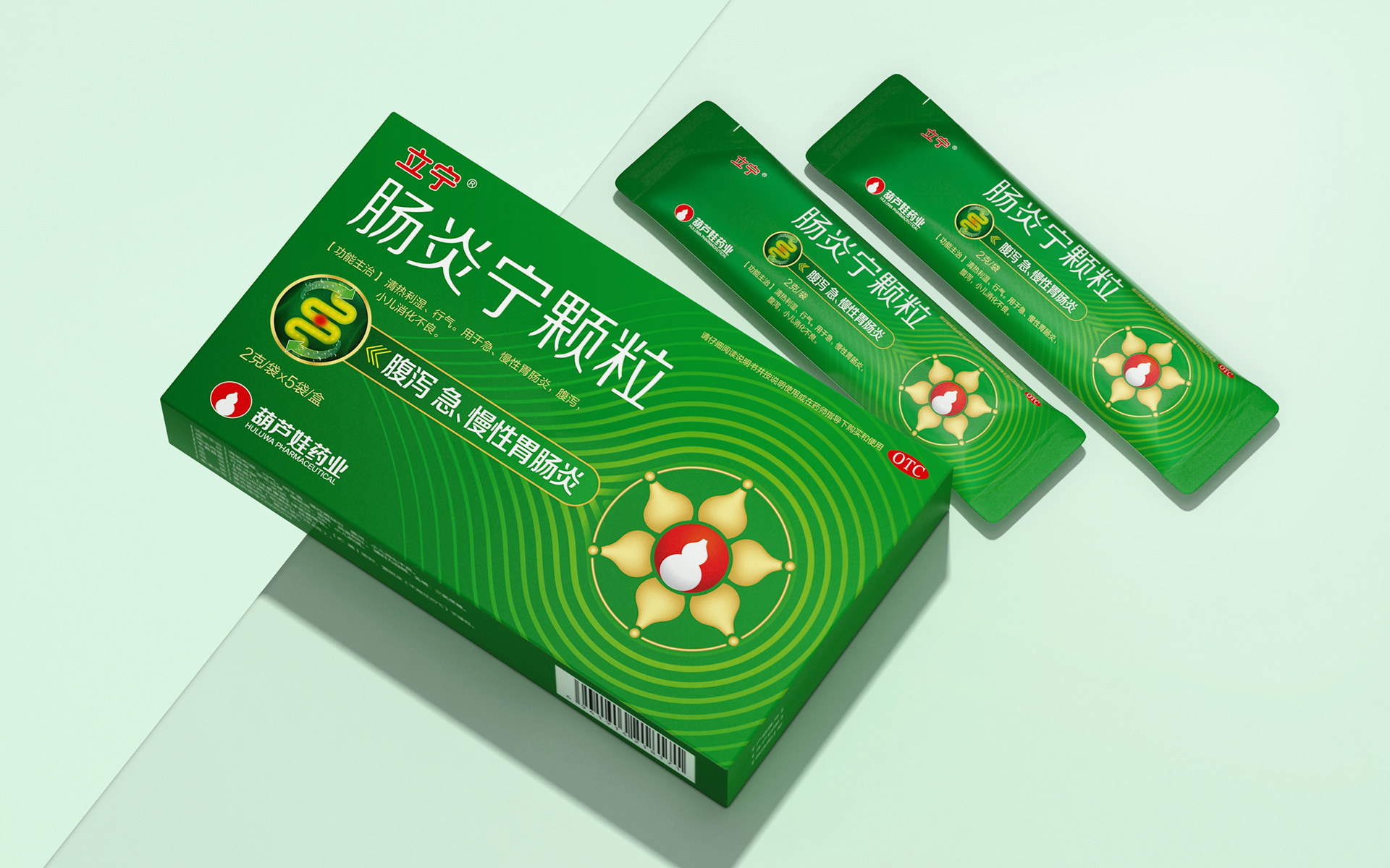 海南葫蘆娃藥業集團葫蘆世家品牌設計、黃金單品腸炎寧顆粒藥品包裝設計項目介紹