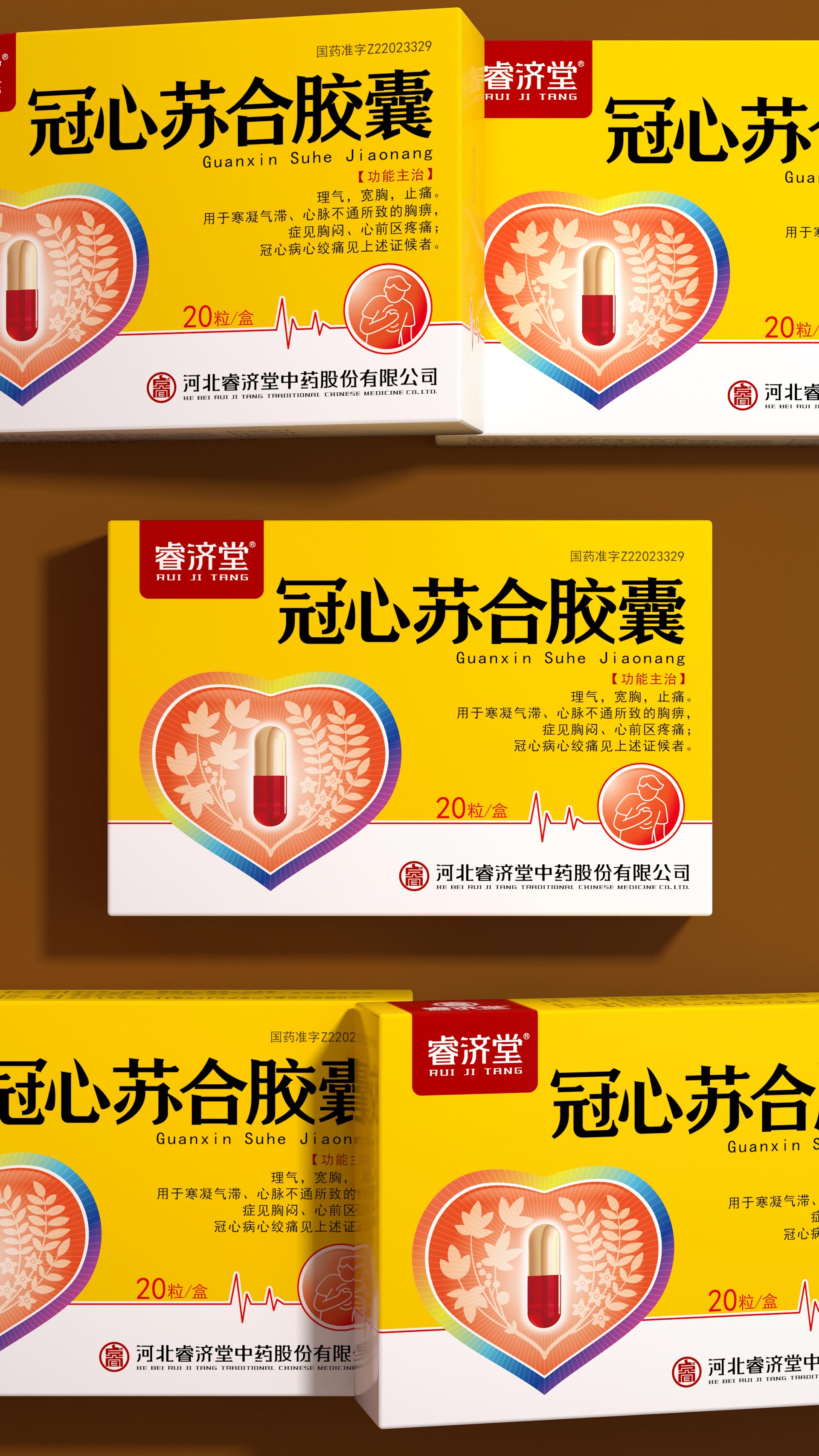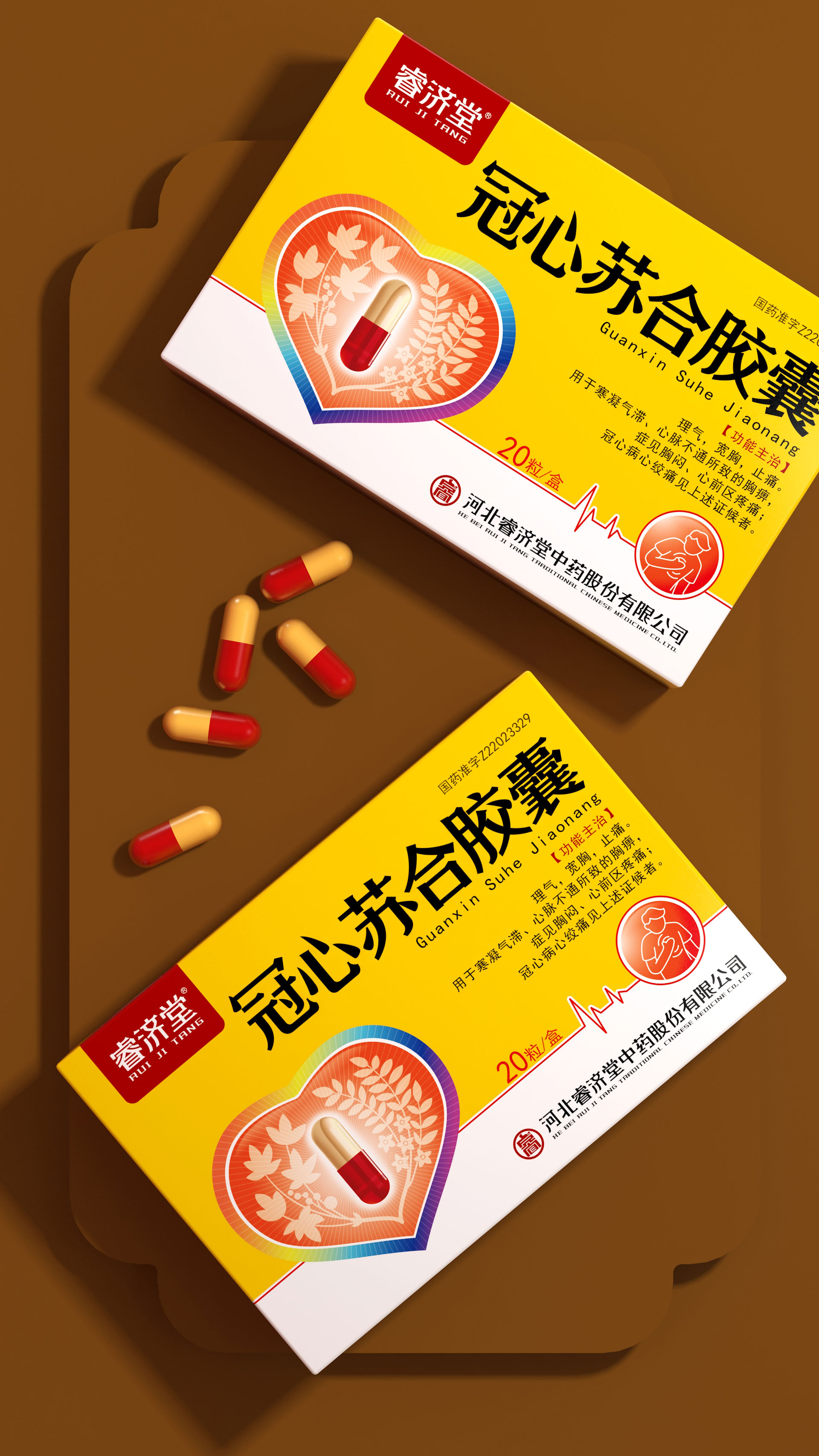 以下為亙一冠心蘇合膠囊中成藥藥品包裝策劃設計案例展示: