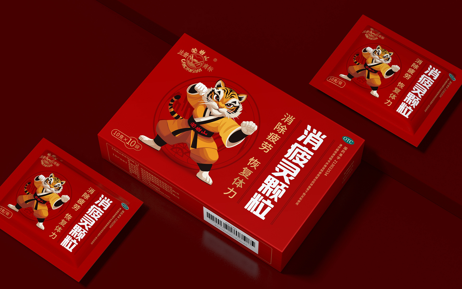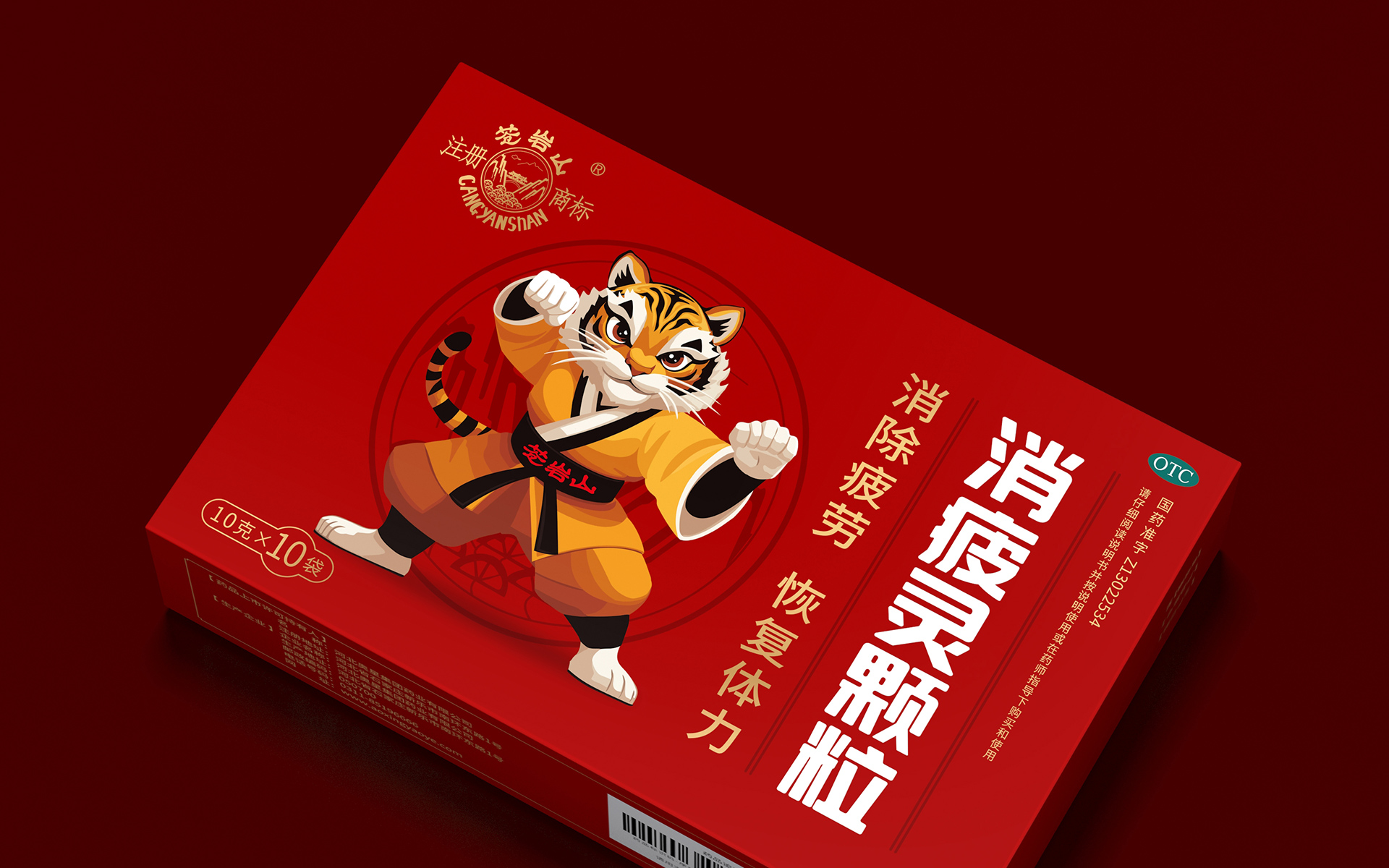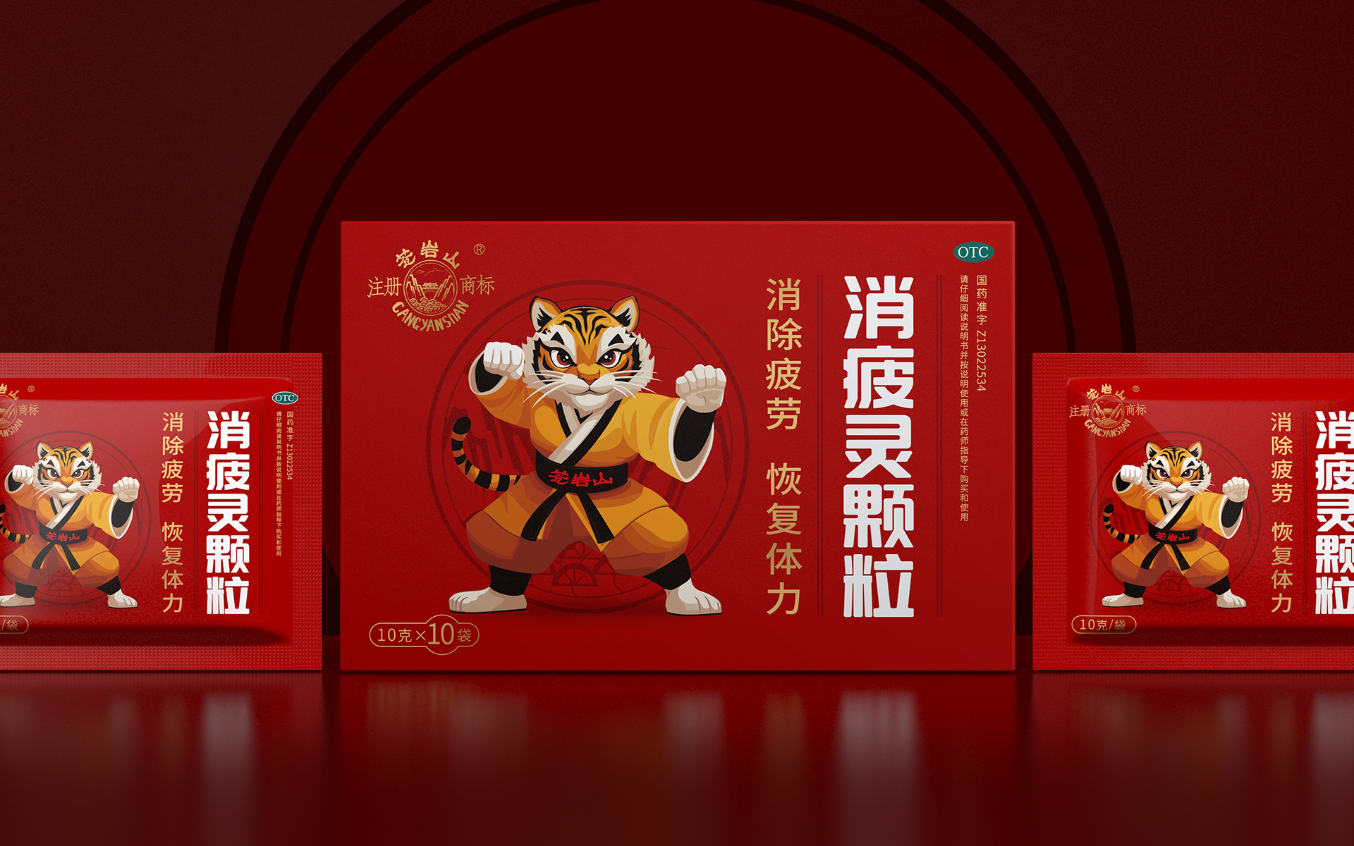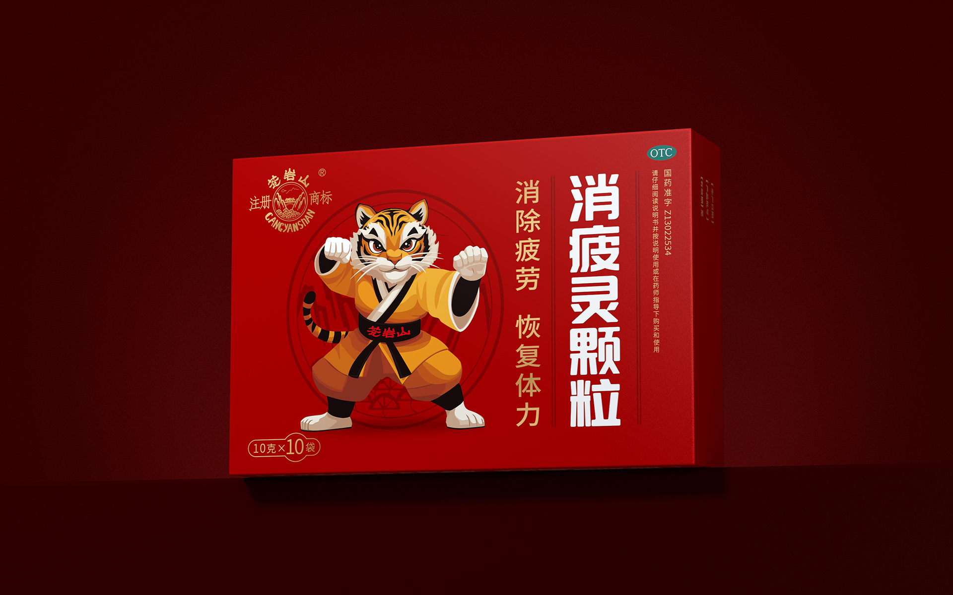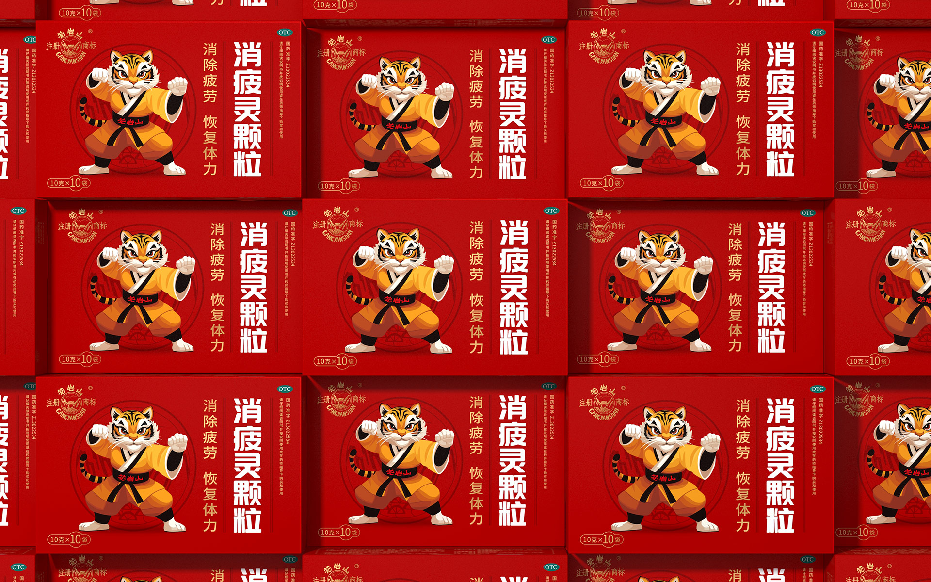 亙一用虎虎生威的IP形象生動傳遞品牌產品核心價值,讓中藥品牌產品蒼岩山牌消疲靈顆粒年輕化、優異化,精準切中現代人對於健康生活的迫切需求,助力品牌產品營銷。