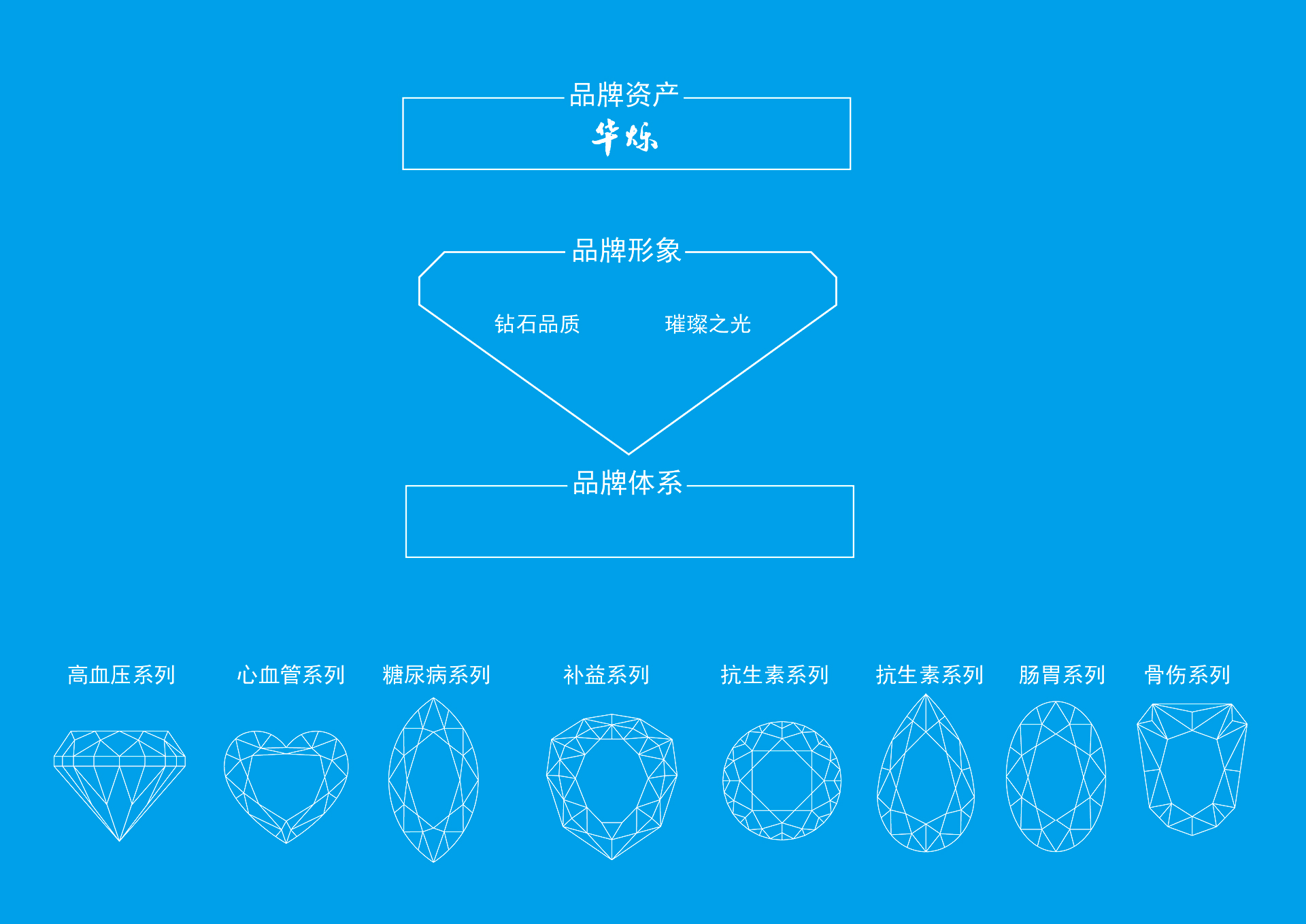 亙一專業藥品包裝設計公司為華爍醫藥打造鑽石品質品牌藥品包裝設計,涵蓋內容包括:高血壓藥品、心血管藥品、糖尿病藥品、補益類藥品、抗生素藥品、腸胃藥品、骨傷藥品等公司所有藥品包裝設計,用鑽石超級符號傳遞華爍是醫藥科技之光、生命探索之光、恒久品質之光。 體現華爍醫藥的品質恒定高端,體現生命醫藥科學的奧秘神奇,體現給病患帶來生命之光,照亮璀璨健康人生。