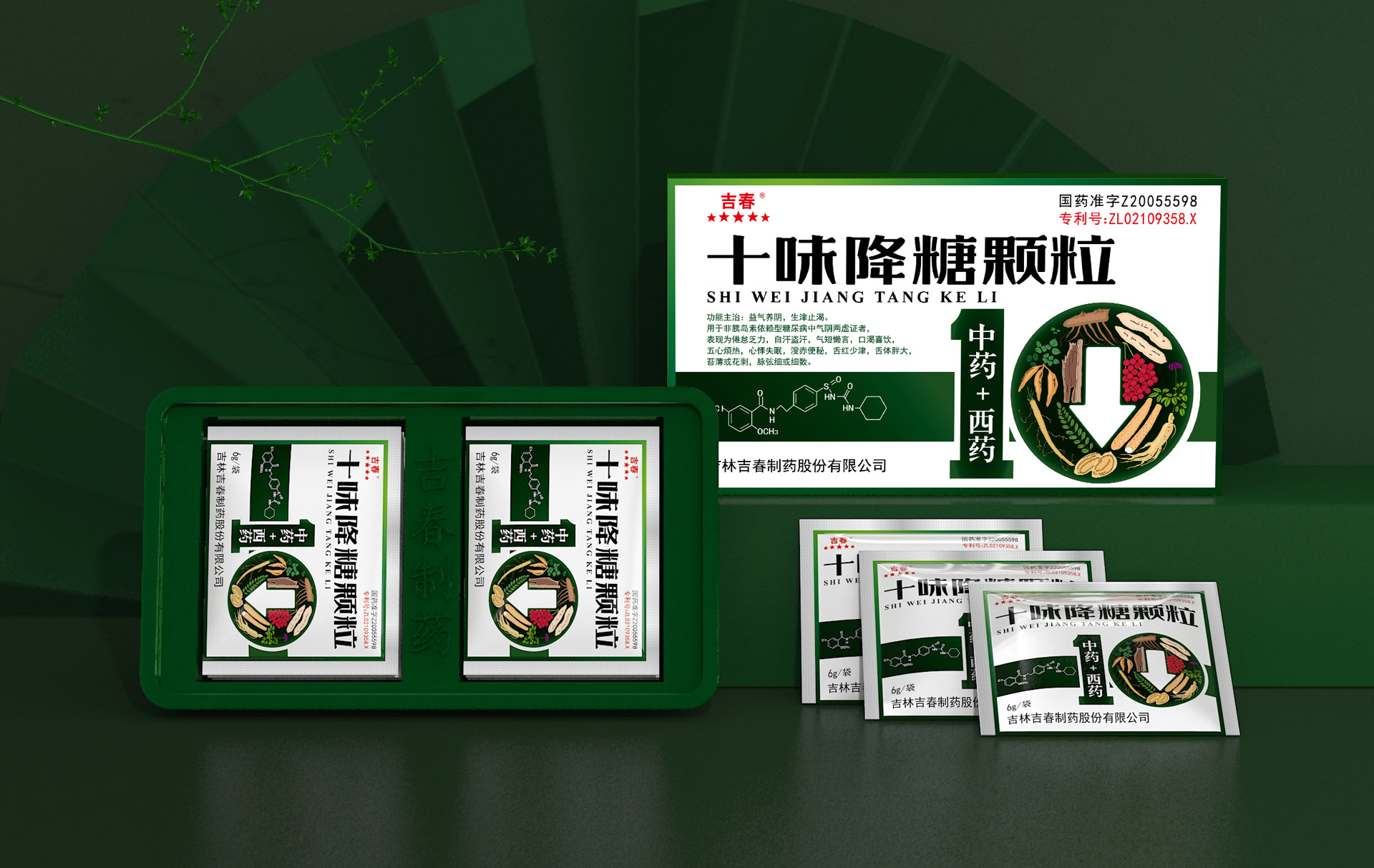 亙一專利藥品包裝設計公司為吉春專利藥品十味降糖顆粒藥品提供營銷策劃包裝設計服務: