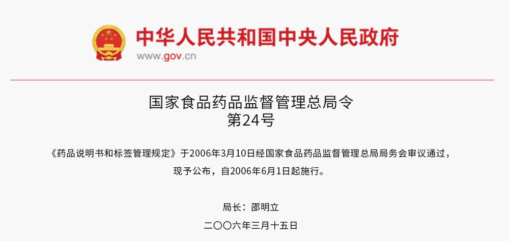 藥品說明書和標簽管理規定(局令第24號)