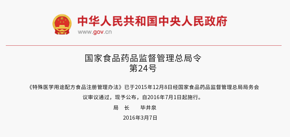 特殊醫學用途配方食品注冊管理辦法